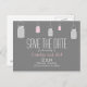 Postcard featuring elegant hanging mason jars in gray and pink on a chic gray background. Personalize it with your names and have the best and most unforgettable wedding starting from the save the date cards perfect for your family and friends. Check out our store to see wedding invitations, labels and many more of this chic design