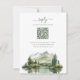 Elegant Rustic Mountain Landscape QR Code Wedding RSVP Card features unique calligraphy script paired with stylish type, along with an elegant mountain landscape watercolor.