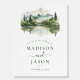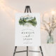 Elegant Rustic Mountain Wedding Welcome Sign features unique calligraphy script paired with stylish type, along with an elegant mountain landscape watercolor.