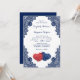 Elegant Rustic Navy Blue and Red Floral Wedding Invitation
