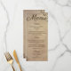 This elegant and rustic style custom dining menu features a parchment paper design background. The design resembles an antique looking parchment paper scroll. The text is printed in an elegant and sophisticated dark chocolate colored font. You can personalize the menu to include your own dining options. Two decorative floral accents are placed in the top right corner and bottom left corner of the menu. It's the perfect rustic and elegant design for our wedding or other special event.
