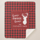 Cute home sweet home Christmas blanket you can easily customize by clicking the "Personalize" button, Featuring deer silhouette and classic plaid in black and red buffalo lumberjack checkered pattern. Perfect for your cozy nights in during the holidays. Makes a great housewarming gift
