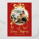 Elegant Rustic Red Christmas Bow Design Photo Foil Holiday Card