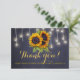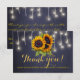 Rustic elegant fall wedding stylish thank you template card on dark midnight navy blue chalkboard background featuring beautiful sunflower bouquets and strings of twinkle lights. Fill in your information in the spots, You can choose to customize it further changing fonts and colors of lettering. ---- The invitation is suitable for elegant summer or autumn fall rustic countryside night weddings. --- If you need assistance in customizing it, please contact me!
