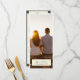 Celebrate your special day with our beautifully designed rustic wedding menu, designed to suit our Elegant rustic wedding invitation suite. This menu features a customizable photo on the front, surrounded by a light yellow border that creates an aged white effect. A charming masking tape-shaped rectangle at the bottom center of the photo holds the couple’s names in an elegant font and their wedding date in a vintage typewriter-style font.