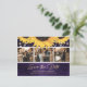 Personalized purple and sunflower wedding photo save the date postcards with an elegant faux gold foil script font. Our wedding save the date features a photo collage of 3 images against a purple rustic wood background adorned with string lights. Easily personalize this rustic sunflower photo save the date postcard with your images and wedding details including a wedding website, if desired.