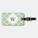 Monogram Luggage Tag in Sage Green and White Quatrefoil; grey text