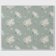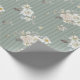 Elegant sage green wrapping paper featuring delicate watercolor florals and subtle vertical stripes.