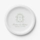 Elegant Sage Chinoiserie Monogram Crest Wedding Paper Plates