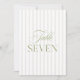 This elegant table number features a soft beige striped background with refined sage green serif typography and subtle script accents. Designed for garden weddings, refined receptions, and timeless outdoor celebrations.