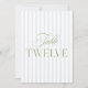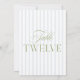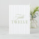 This elegant table number features a soft blue striped background with refined sage green serif typography and subtle script accents. Designed for garden weddings, refined receptions, and timeless outdoor celebrations.