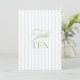 This elegant table number features a soft blue striped background with refined sage green serif typography and subtle script accents. Designed for garden weddings, refined receptions, and timeless outdoor celebrations.