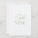 This elegant table number features a soft blue striped background with refined sage green serif typography and subtle script accents. Designed for garden weddings, refined receptions, and timeless outdoor celebrations.
