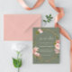 Delicate and enchanting, this save the date card showcases a soft sage green backdrop adorned with graceful blush pink florals. The intricate floral patterns delicately cascade along the edges, creating an ethereal atmosphere that will captivate your guests' hearts. The combination of the soothing sage green and the gentle blush hues evokes a sense of tranquility and tenderness, setting the tone for your upcoming nuptials.