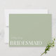 These elegant, minimalist bridesmaid proposal cards feature modern script typography and clean text for a simple and stylish sage green design you will love. Add custom text to provide any additional information needed for your guests. Feel free to message me with any design-related questions - I'll be happy to help!