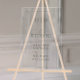 The elegant script font flows gracefully across the acrylic, exuding an aura of romance and tradition. The transparent backdrop gives the illusion of floating text, creating a modern aesthetic that is both captivating and chic. This sign isn’t just a guide for your guests; it’s a piece of art that enhances the overall ambiance of your wedding.