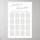 This elegant sage green calligraphy travel theme seating plan poster is perfect for a simple wedding. The neutral design features a minimalist sign decorated with romantic and whimsical typography. This wedding poster includes enough room for up to 16 tables (160 guests). In addition to the placement of each guest, personalize this sign with the names of the bride and groom and the wedding date. This seating chart can be used for a wedding reception or any special event.