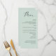 Elegant sage green wedding or dinner reception Menu card. Contemporary, simple and elegant design with beautiful modern hand written calligraphy. Front and back background color in sage green tone. Ability to change both front and / or back background color by selecting "customize further". Design available in a variety of color choices. Part of our "Earth Tones Event Signs and Products" collection with a variety of coordinating products available including seating plan cards and table numbers and event signs.