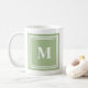 Elegant Sage Green Colored Block Frame Monogram Coffee Mug