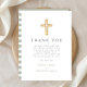 Personalized Elegant Sage Green Cross Baptism Thank You Card.