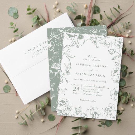 Sophisticated sage green floral QR code wedding RSVP card.