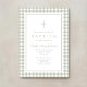 Elegant Sage Green Gingham Girl Baptism Invitation