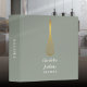 An elegant recipe binder featuring a chic gold whisk on a stylish sage green background with your personalized name and title set in modern typography. Designed by Thisisnotme©