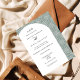 Having your Elegant Sage Green Pattern Wedding Invitation match the theme of your party is a great detail that your guests will appreciate. The thoughtfulness of a consistent party theme is often appreciated and can show your guests that you can host a cohesive event.
