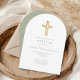 Elegant Sage Green Religious Cross Baptism Arch Invitation