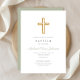 Elegant Sage Green Religious Cross Baptism Invitation