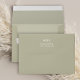 This design features a weddings, return address envelope with a sage green color, an elegant, basic, simple, botanical style with a modern, monogram design and a minimalist style.