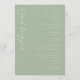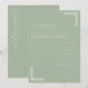 This wedding program features a minimalist, elegant design with a soft sage green background and white text for contrast. The layout is structured with a flowing cursive script for the welcoming message, followed by bold uppercase letters for the names, creating an inviting and formal atmosphere. Decorative corner brackets add subtle sophistication, while clean typography ensures readability. Perfect for a modern yet timeless celebration, this design conveys warmth and serenity, making it ideal for any special wedding occasion.