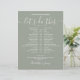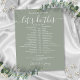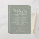 This simple elegant sage green let's do this' wedding schedule-timeline can be personalized with your wedding details in modern white lettering. Designed by Thisisnotme©