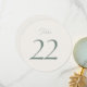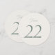 Elegant minimalist wedding table numbers featuring a refined sage green number design on a soft ivory background. These modern round table number signs are perfect for guiding guests to their seats while adding a stylish touch to your wedding reception décor.