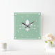 Elegant Sage Green White Fleur de Lis Custom Name Square Wall Clock