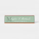 Add a personal touch to your office desk with this elegant nameplate with your initial in muted green against a sage green background under your name and title in white.