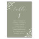 Help your guests find their seats with ease and style. These elegant greenery wedding seating chart table number cards feature large, legible numbers surrounded by a delicate sage greenery wreath. Double-sided printing ensures visibility from across the room, making your reception flow beautifully.