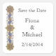 A formal border in a golden geometric patterns with blue leaves and tiny flowers, vintage art from an antique manuscript. Click Customize It to change fonts, background colors, change text, even save your design for later!