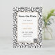 The Save The Date Black Foliage Outline Aztec Gold Accents Invitation Card announces your wedding event in style. Against a pristine white backdrop, intricate foliage outlines in black create a captivating contrast that exudes timeless sophistication. The white text field, delicately framed in thin Aztec gold color, adds refinement to the design, while the bride and groom's names, in traditional italic serif font, shine in Aztec gold color for a personalized touch. The reverse side features a custom black and white image of the couple with their names overlaying. Customize the text, image, and QR code to make it uniquely yours. For further wedding planning inspiration, visit www.KBMD3signs.com. For custom design inquiries or assistance, reach out to us at info@KBMD3signs.com.