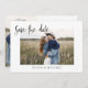 Wedding Save the Date Cards that have a photo on the front and back. The Save the Date cards contain a modern hand lettered cursive script typography that are elegant, simple and modern to use after you minimalist simple wedding day celebration.