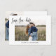 Wedding Save the Date Cards that have a photo on the front and back. The Save the Date cards contain a modern hand lettered cursive script typography that are elegant, simple and modern to use after you minimalist simple wedding day celebration.