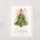 Elegant Scipt Christmas Tree Pink Bow Holiday Card
