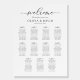 Classic Calligraphy Script Wedding Seating Plan. Welcome sign. Personalized Simple Minimalist Seating Chart for 110 guests (11 tables). Just click the customize further link, shown under the text personalization area on the right, and choose your custom color background. This sign poster template makes it fast and easy to create stunning additions to your wedding decor. Signs can be enlarged, there are many sizes to choose from, as well as options for custom framing and matting.