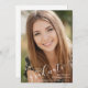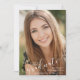 Announce your high school or college graduate's achievement with this photo announcement featuring an elegant white calligraphy script typography GRADUATE title overlay on the front along with her name, school and class year. The back features another photo and information about your graduate's achievements, activities and future plans. ASSISTANCE: For help with design modification/personalization, transferring the design to another product or if you would like coordinating items, contact the designer BEFORE ORDERING via Zazzle Chat or makeitaboutyoustore@gmail.com.