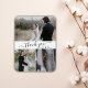 Elegant, Minimalist Hand Lettered Wedding Photo Thank You magnets. Stylish wedding thank you card template featuring three photo. With the text "Love and thanks" in a beautiful swirly hand lettered typography script font with swash or tails in black color on white background. Heart shape between the names. Easy to personalize the custom name and date. Pretty keepsake for your wedding guests. If You need help or matching item, please contact to designer!