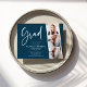 Elegant Minimalist Script 3 Photo Graduation Invitation Postcard in teal blue color.