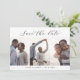 This elegant script 3 photo template save the date card is perfect for a simple wedding. The minimalist black and white design features fancy romantic typography with modern glam style. Customizable in any color. Keep the design minimal and classy, as is, or personalize it by adding your own graphics and artwork.