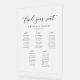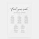 Classic Calligraphy Script Wedding Seating Plan with a translucent white background. Find Your Seat Sign. Personalized Simple Minimalist Seating Chart for 50 guests (5 tables). Just click the customize further link, shown under the text personalization area on the right, and choose your custom color background. This sign poster template makes it fast and easy to create stunning additions to your wedding decor. Signs can be enlarged, there are many sizes to choose from, as well as options for custom framing and matting.