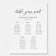 Classic Calligraphy Script Wedding Seating Plan. Welcome sign. Personalized Seating Chart for 50 guests. Just click the customize further link, shown under the text personalization area on the right, and choose your custom color background. This sign poster template makes it fast and easy to create stunning additions to your wedding decor. Signs can be enlarged, there are many sizes to choose from, as well as options for custom framing and matting.