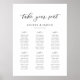 Classic Calligraphy Script Wedding Seating Plan. Welcome sign. Personalized Seating Chart for 60 guests. Just click the customize further link, shown under the text personalization area on the right, and choose your custom color background. This sign poster template makes it fast and easy to create stunning additions to your wedding decor. Signs can be enlarged, there are many sizes to choose from, as well as options for custom framing and matting.